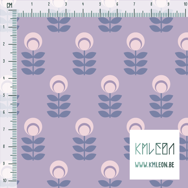 Pink and blue scandi flowers, against a purple background.