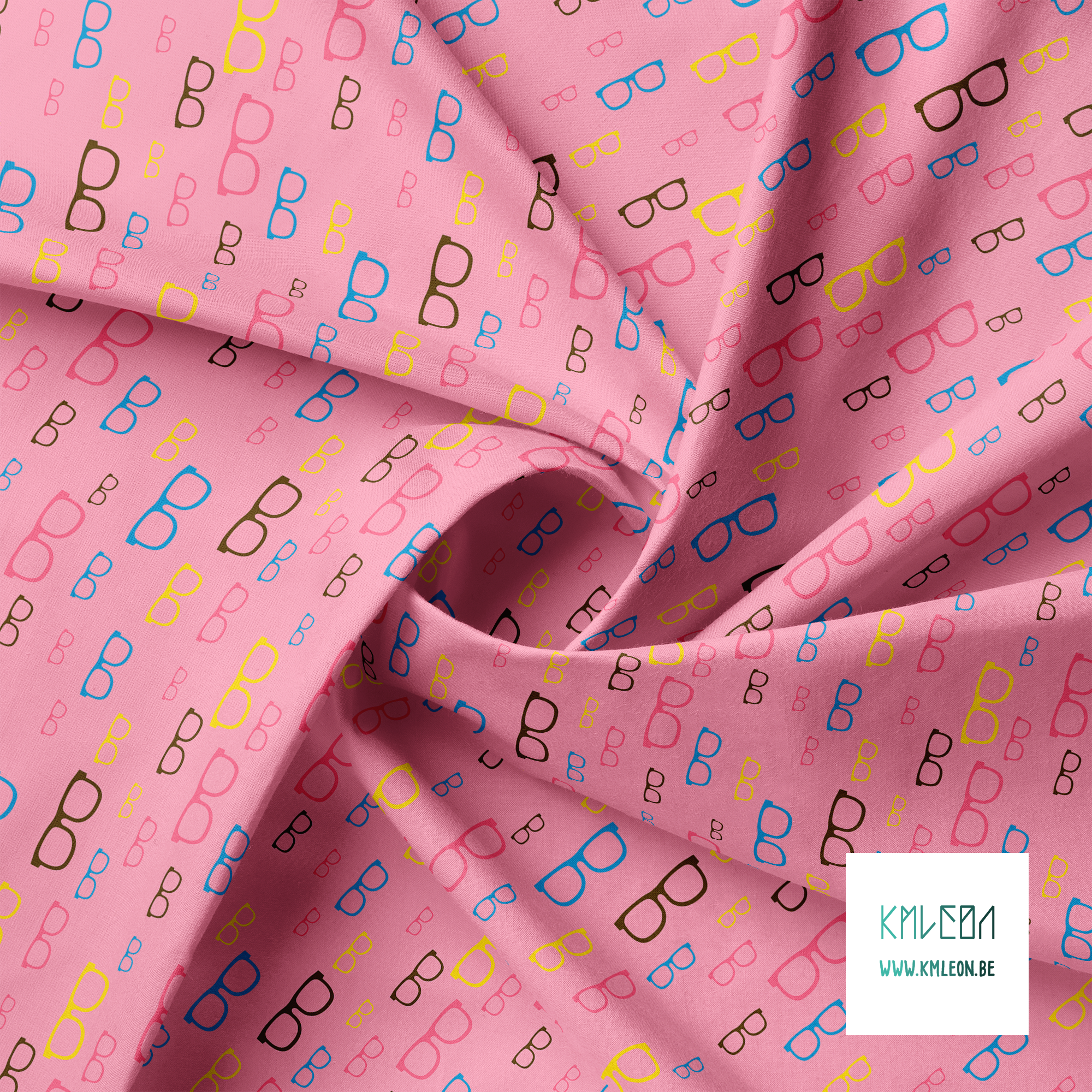 Brown, blue, pink and yellow glasses fabric