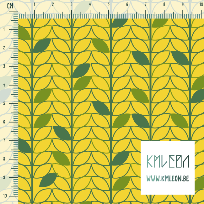 Green leaves, against a yellow background.