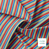 Horizontal stripes in yellow, red and blue fabric
