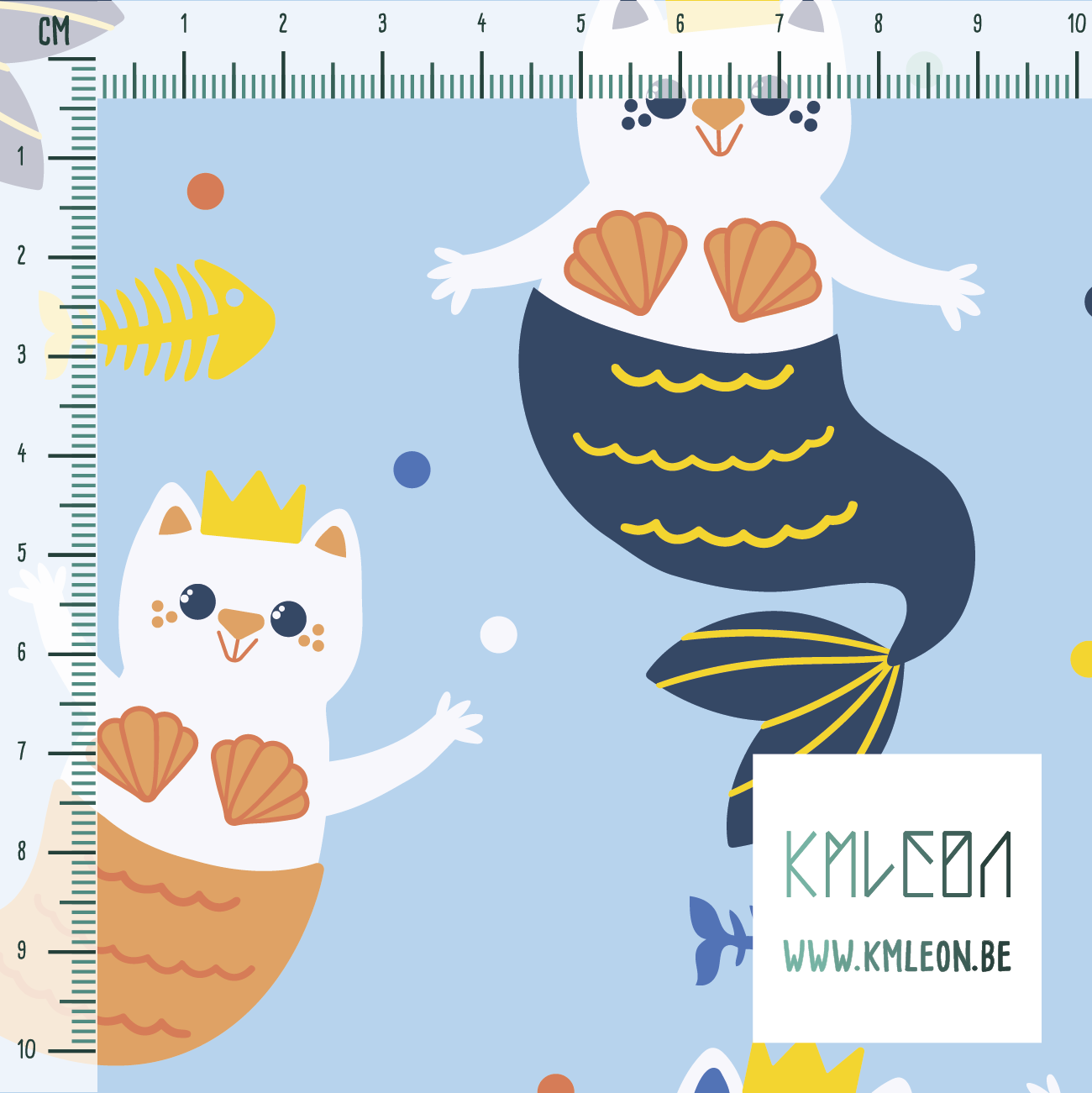 Mermaid cats, against a light blue background.