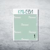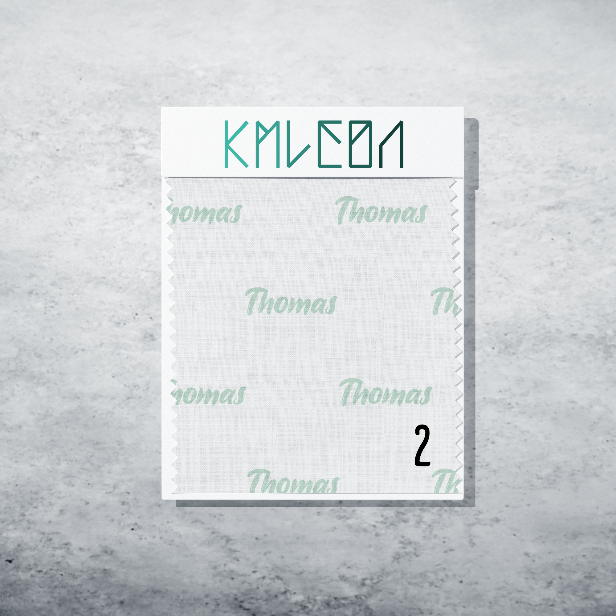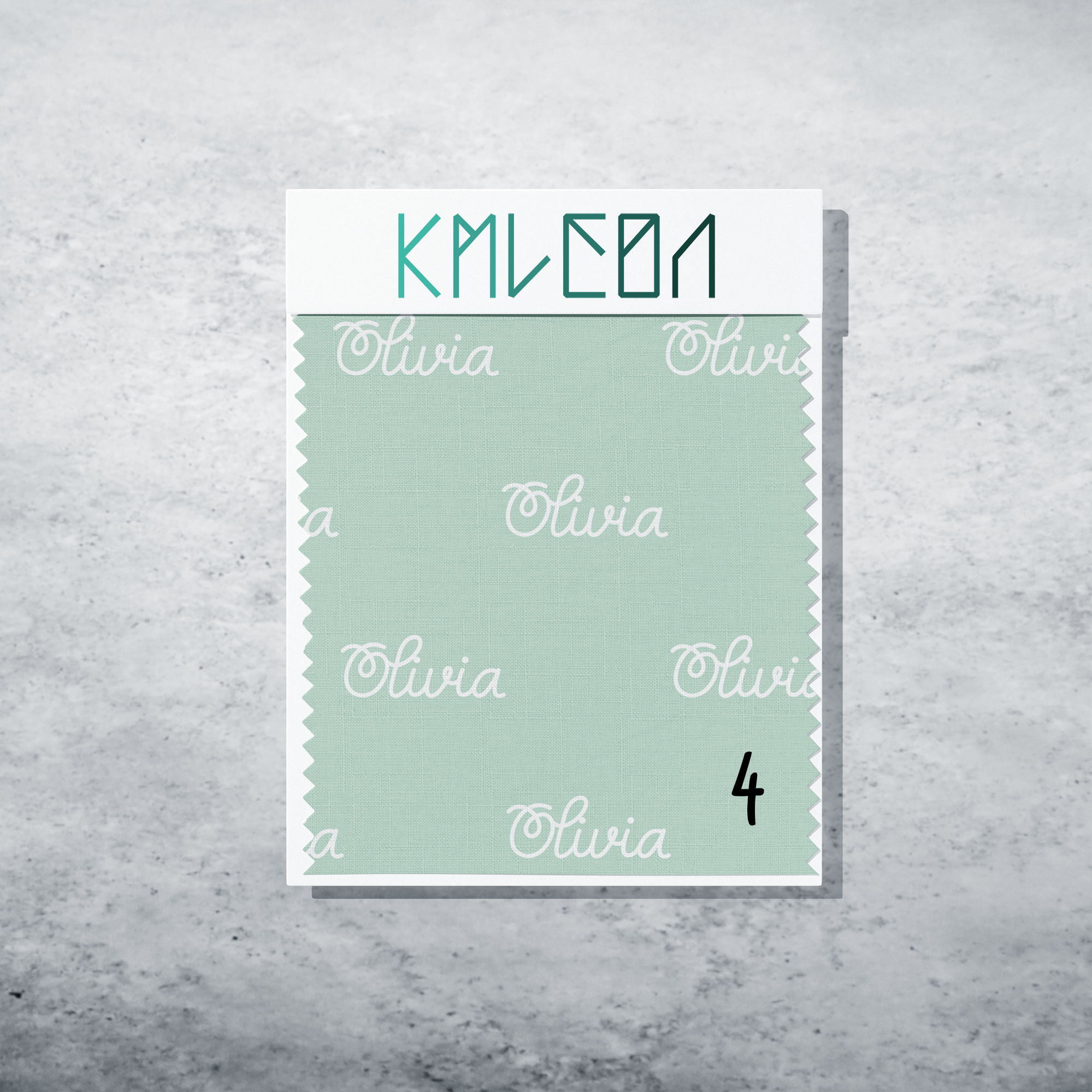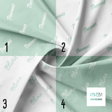 Personalised fabric in aero blue. There are 4 different personalisation options: choose a white base (with coloured letters) or a coloured base (with white letters) and choose one of 2 available fonts.