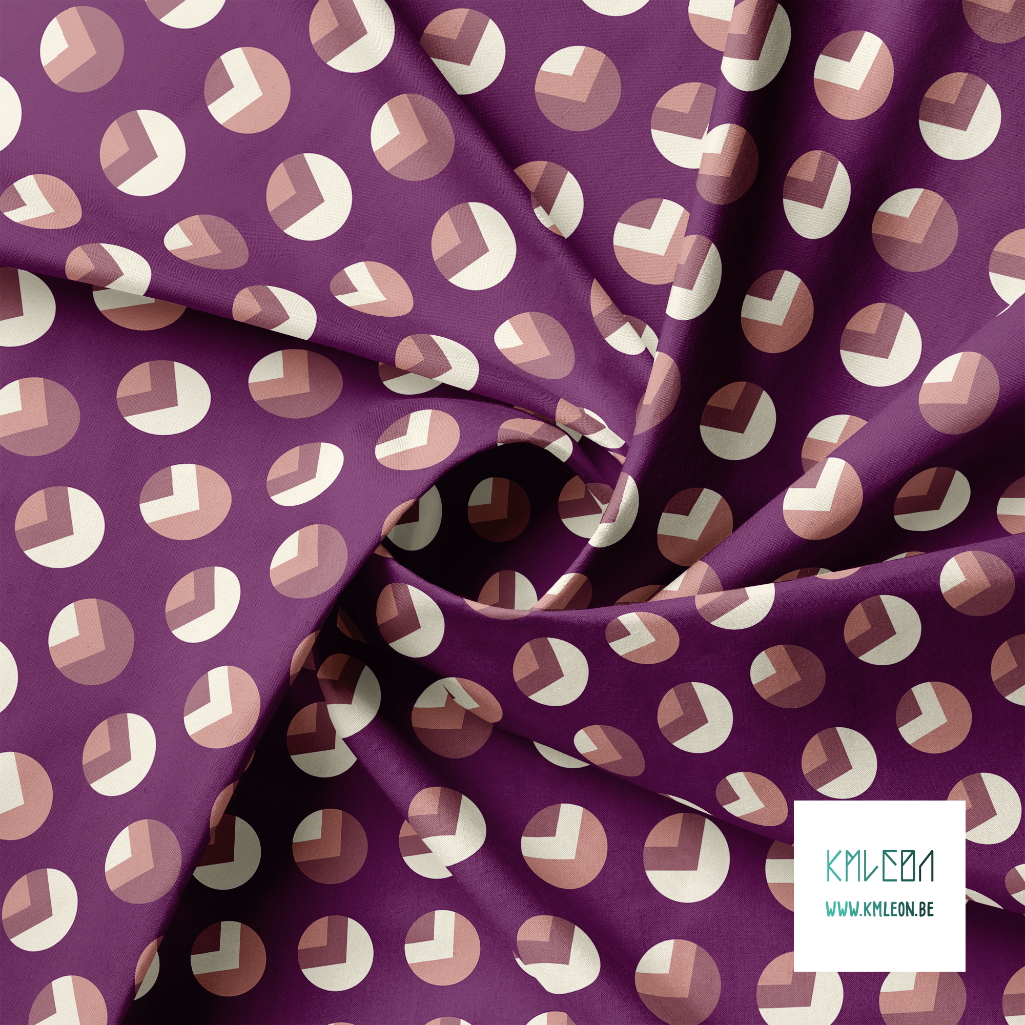 Pink and cream circles and triangles, against a purple background.