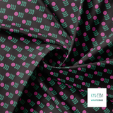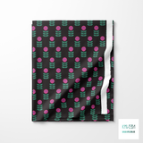 Pink and green scandi flowers, against a black background.