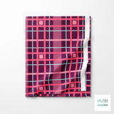 Pink and light blue plaid, against a purple background.