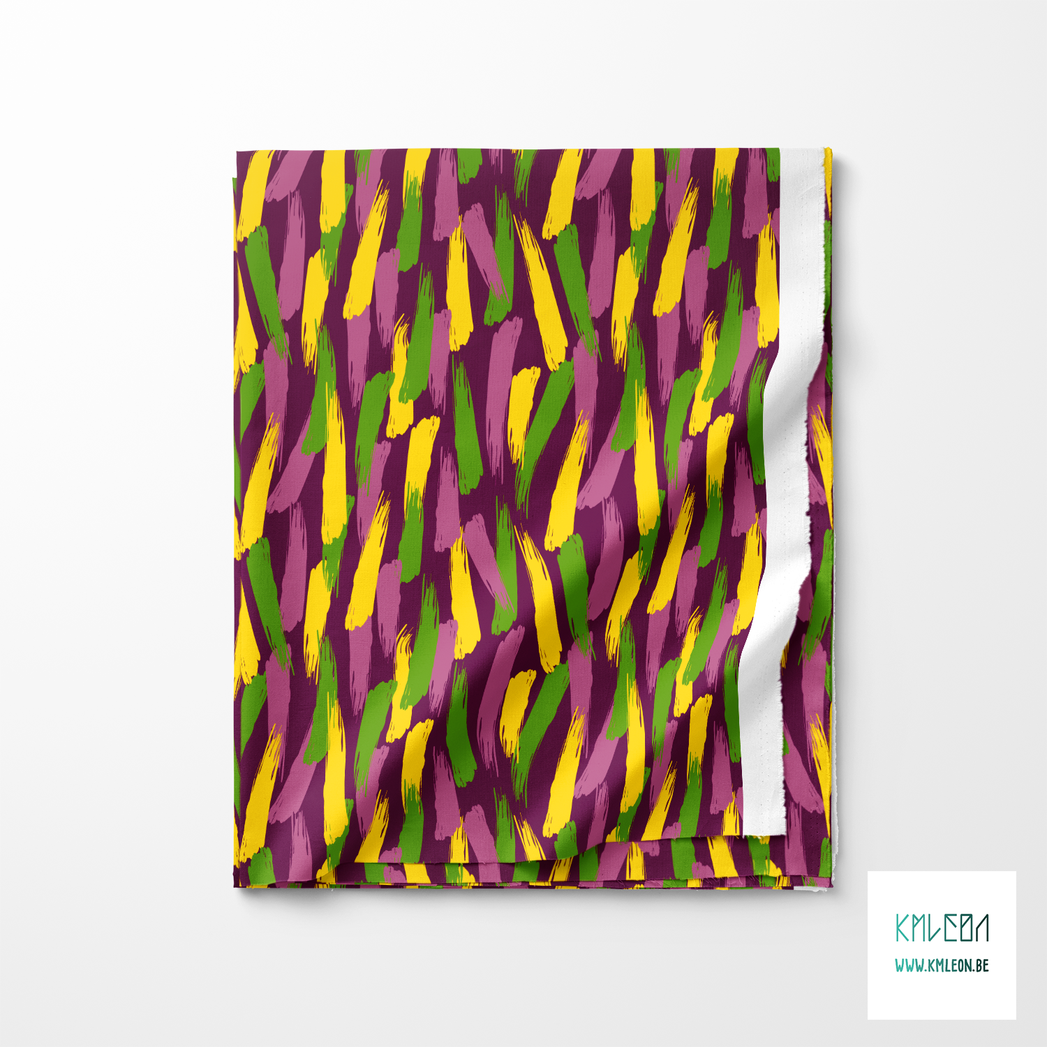 Pink, yellow and green brush strokes, against a purple background.