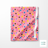 Random yellow, pink and blue polka dots fabric
