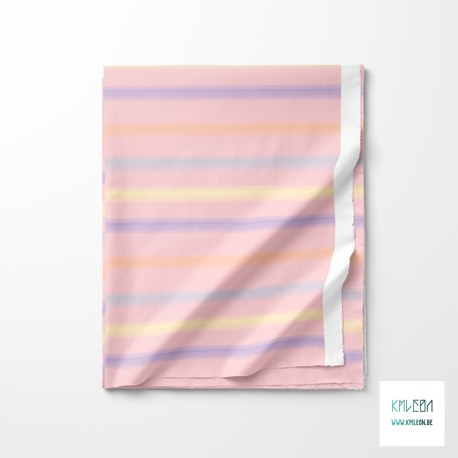 Soft horizontal stripes in orange, blue, purple and yellow, against a pink background.