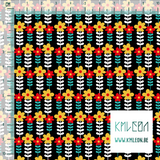Yellow, red, teal and white flowers fabric