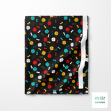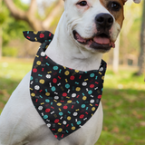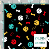 Yellow, red, white and teal dog toys fabric